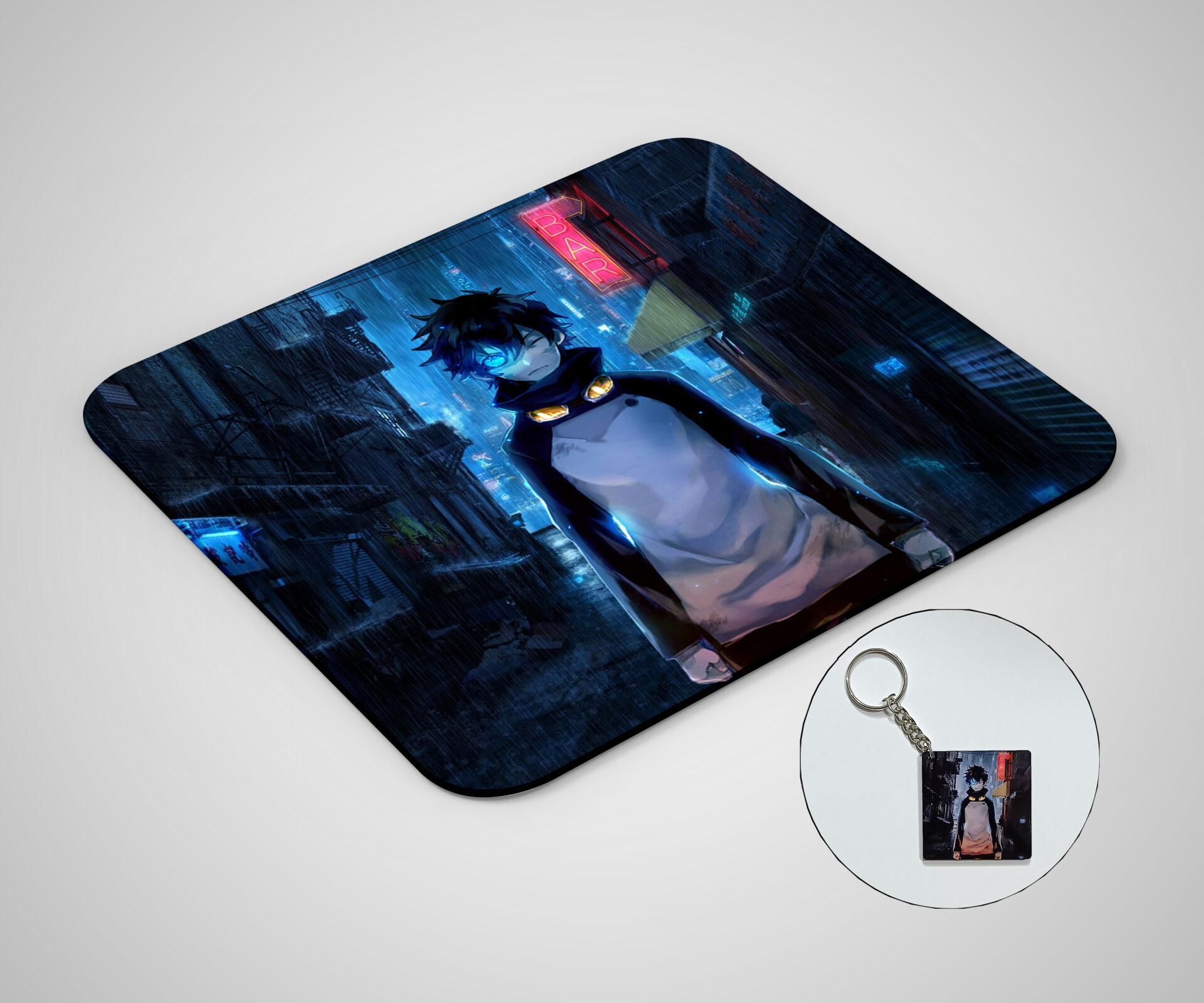 Anime Printed Mouse Pad & Keychain Combo